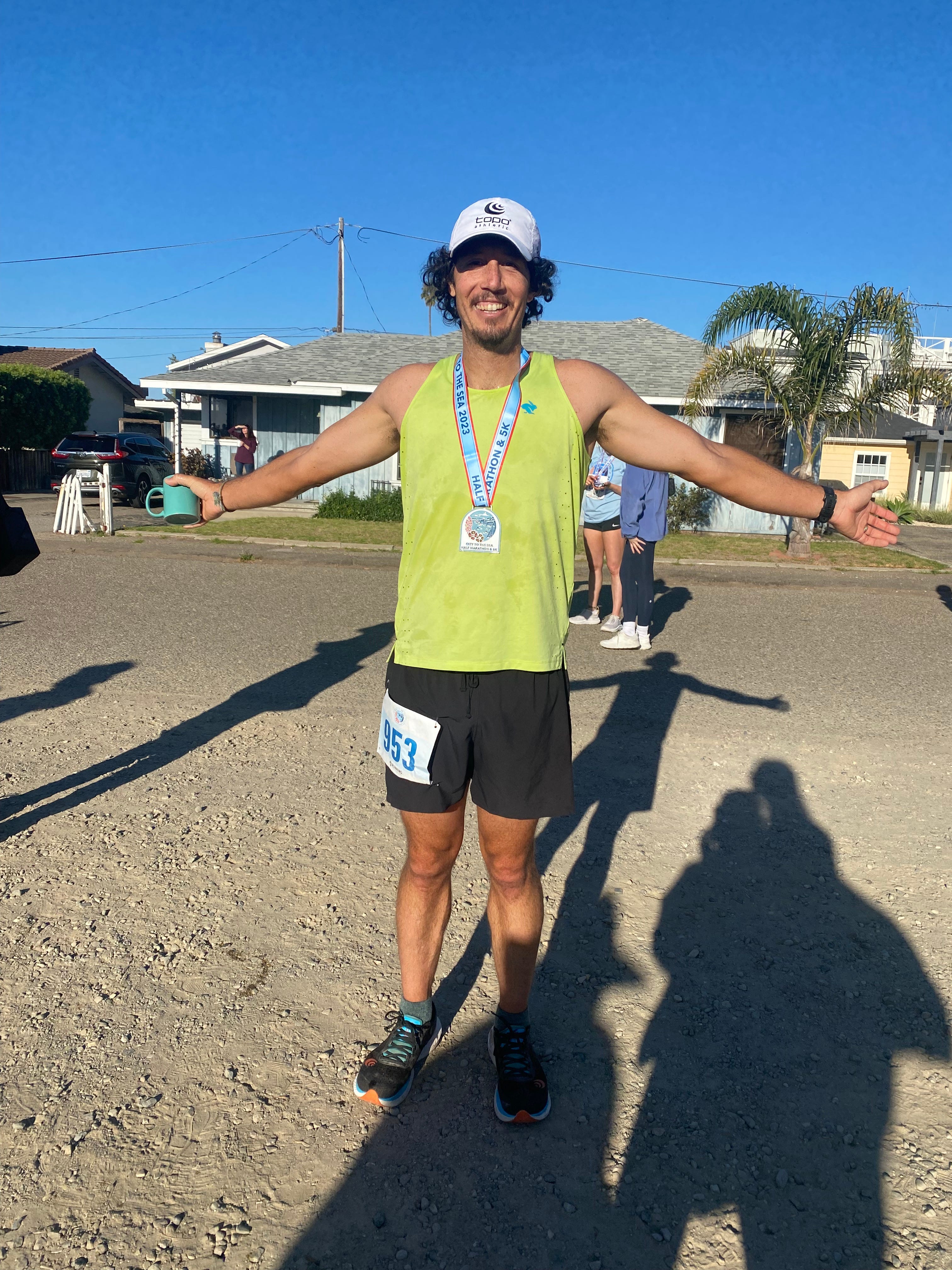 Earlier today, Nick ran City to the Sea Half Marathon, which runs from downtown San Luis Obispo to the finish at Dinosaur Caves Park in Pismo Beach. I wanted to sign up, too, but I decided it would be a poor decision to race at the end of a big week, on my rest day at that, and potentially dig myself into a hole in terms of both recovery and training. However, it was just as fun watching Nick run the race and PR with a 1:22 finish!