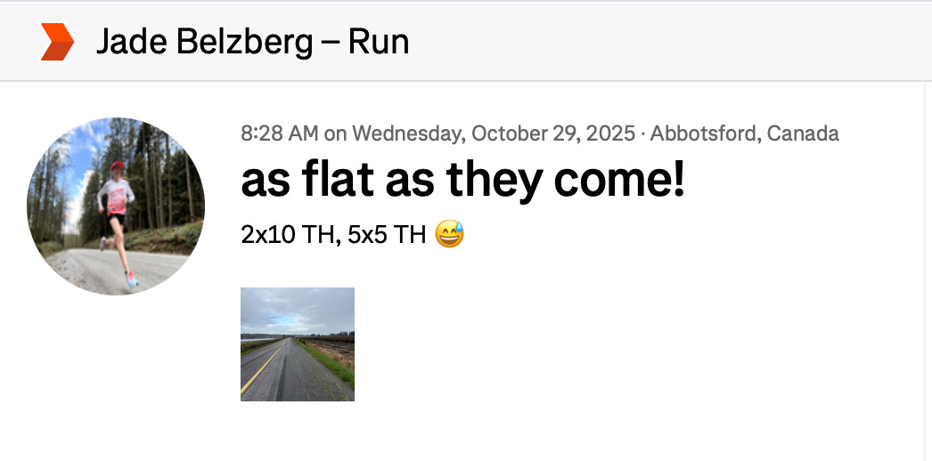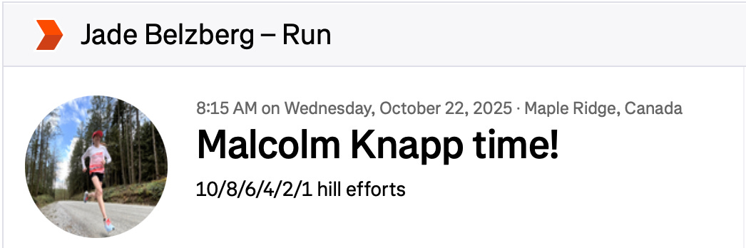 Last Wednesday, I ran this workout in Maple Ridge, British Columbia: