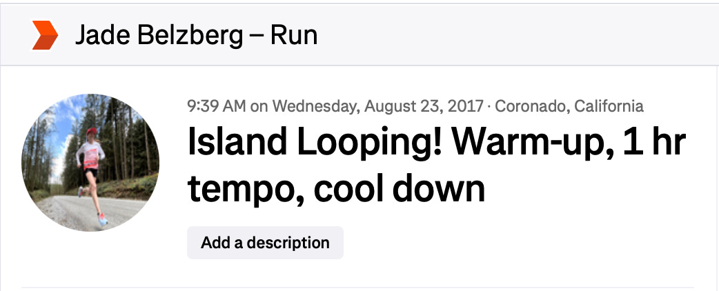 Similarly, my speed on flat ground has improved. On August 23, 2017, I ran this workout, again in San Diego: